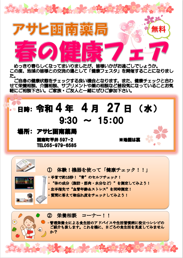 アサヒ函南薬局 健康フェア開催のお知らせ